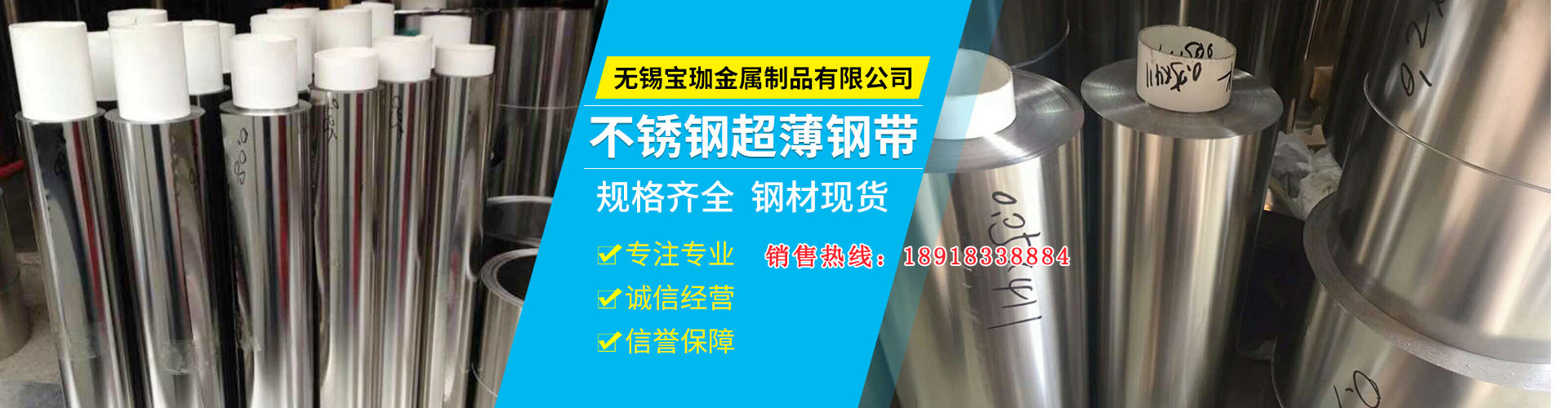 無錫寶珈金屬制品有限公司專業(yè)經(jīng)營不銹鋼板卷材及不銹鋼帶的生產(chǎn)與銷售。長期庫存儲備進(jìn)口、國產(chǎn)不銹鋼超薄、超硬、超平帶材,厚度從0.01mm-3.0mm,寬度最窄可分到2mm,狀態(tài)由軟、中、硬、特硬,同時可根據(jù)客戶的要求定制各種不銹鋼帶。